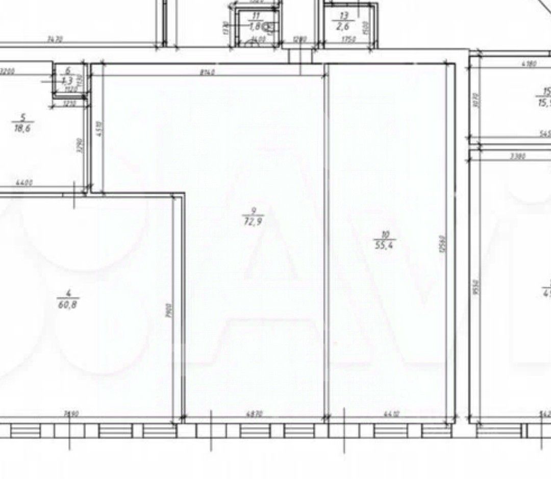 * Возможность объединения помещений (перегородки демонтируются)