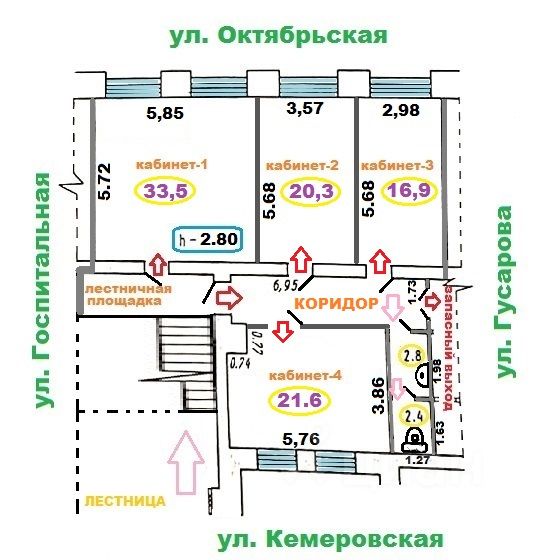 Сдаются, в здании 2005 г.п., офисные помещения 111,1 кв. м., весь 4-й этаж, свой индивидуальный санузел! Высокие потолки 2.80 м. По количеству окон возможно сделать 6 кабинетов. Удачное место расположение в самом центре города, хорошая транспортная развязка, большая парковка. В здании на первом этаже круглосуточная охрана, сигнализация, видео-наблюдение. В кабинетах установлены кондиционеры. 90 000 руб. в мес. + все коммунальные платежи + счётчики (эл-во, вода, тепло) + депозит 90 000 руб. Агентское вознаграждение 10 000 руб.