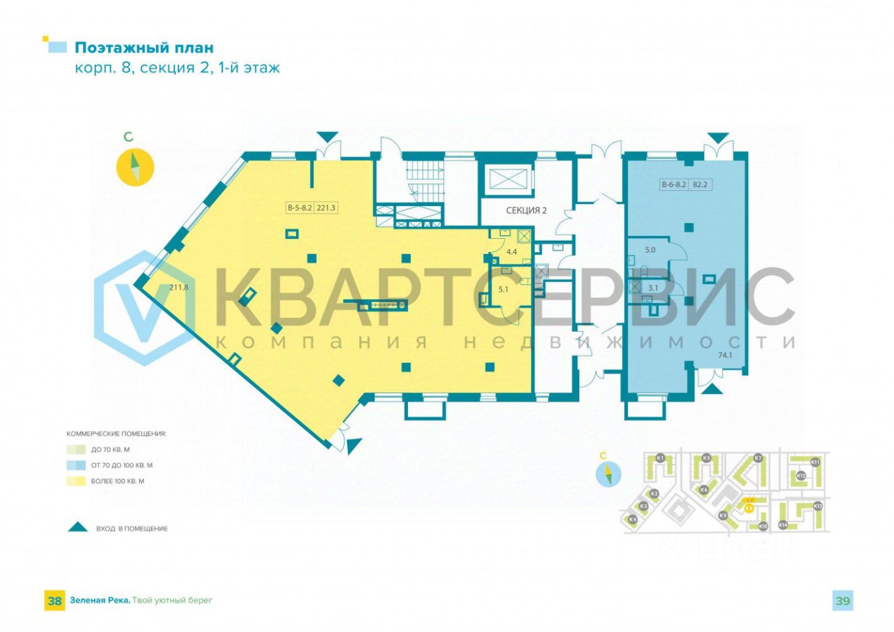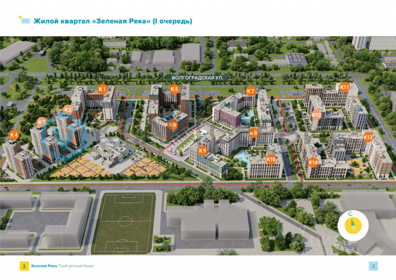 В первой очереди ЖК построено 14 многоквартирных жилых домов (все сдаются в 2025 году), насчитывает более 2 500 квартир — стабильный пешеходный трафик и высокий спрос на услуги и магазины.