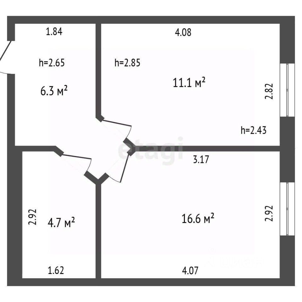 - Потолки 2,85 м