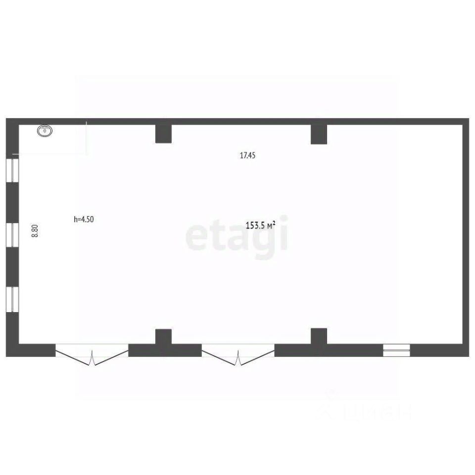 - Высота потолка - 4,5 м.