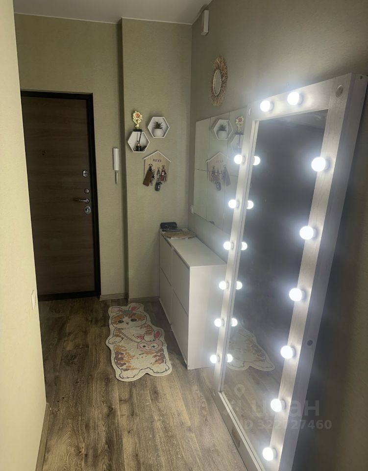 В прихожей вместительный шкаф купе, зеркало гриммерное в пол.
