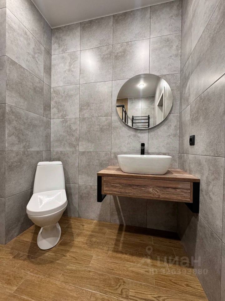 Санузел выложен кафельной плиткой, в современном стиле