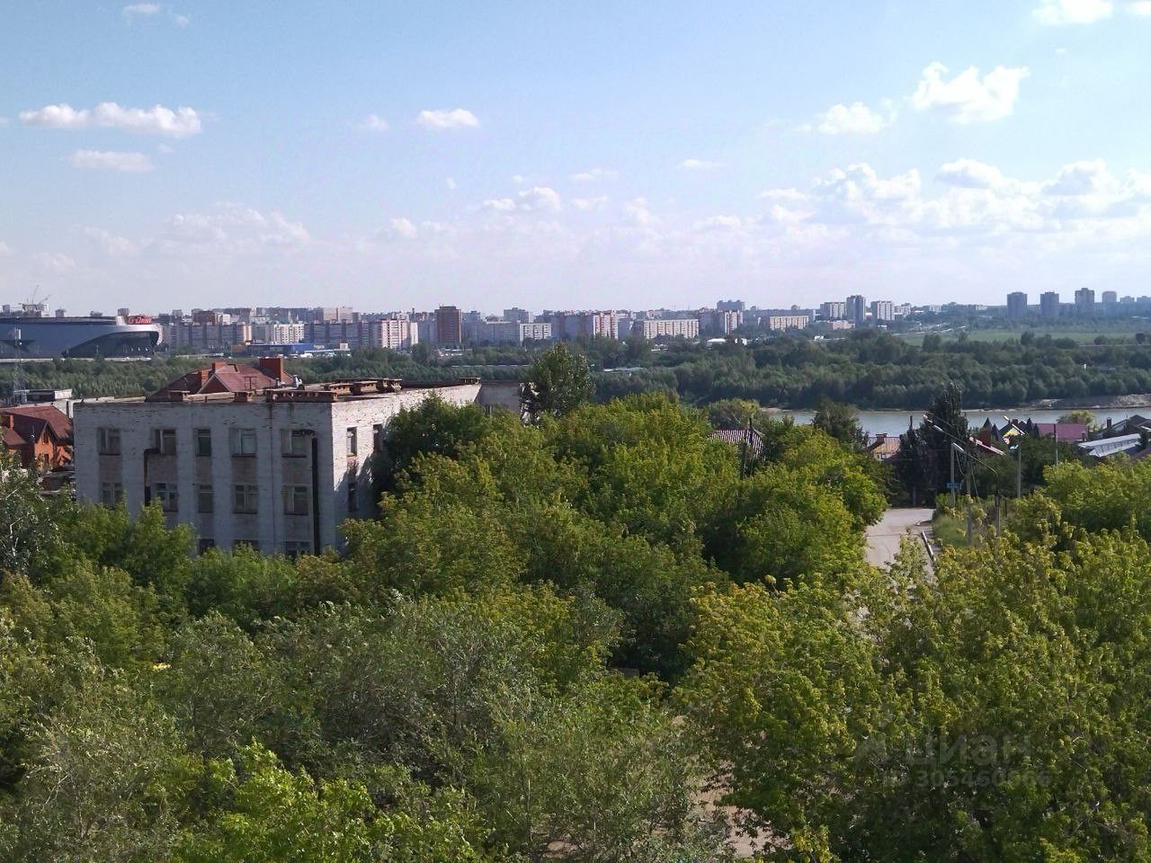 Высокие потолки (2,9-3,0 м), два больших окна, из которых открывается шикарный вид на зелёный массив и левый берег.