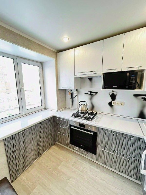 Квартира полностью готова к проживанию, есть все для этого необходимое: современный кухонный гарнитур с техникой (варочная панель, духовой шкаф, микроволновая печь, холодильник, чайник), обеденный стол, удобный диван, кондиционер, стиральная машина.