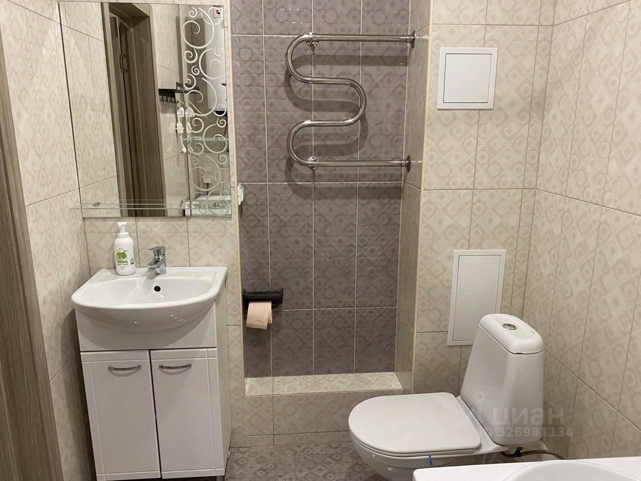 В квартире выполнен современный ремонт, такая обстановка позволяет сразу въехать и жить с комфортом. На кухне и в комнате есть вся необходимая мебель. Ванная комната оснащена полноценной ванной. Из техники в квартире есть кондиционер, холодильник, телевизор и стиральная машина, поэтому можно не беспокоиться о покупке бытовой техники.