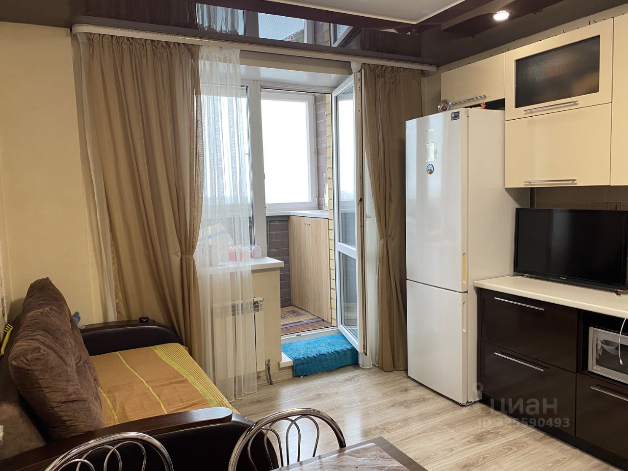 Квартира с ремонтом. На кухне площадью 15 кв. м установлена вся необходимая техника: холодильник, посудомоечная машина, телевизор.В комнате и на кухне есть вся нужная мебель для комфортного проживания. Есть застекленный балкон, большая гардеробная.
