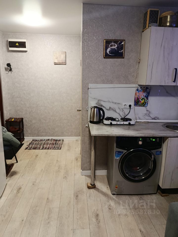 Сдаётся уютная студия площадью 25,5 кв. м на третьем этаже пятиэтажного кирпичного дома, построенного в 1978 году. Высота потолков — 2,5 метра. Жилая площадь составляет 18 кв. м. Окна выходят во двор, что гарантирует тишину и спокойствие.