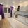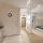 На полу в комнате ламинат, в зоне кухни плитка, в ванной плитка.