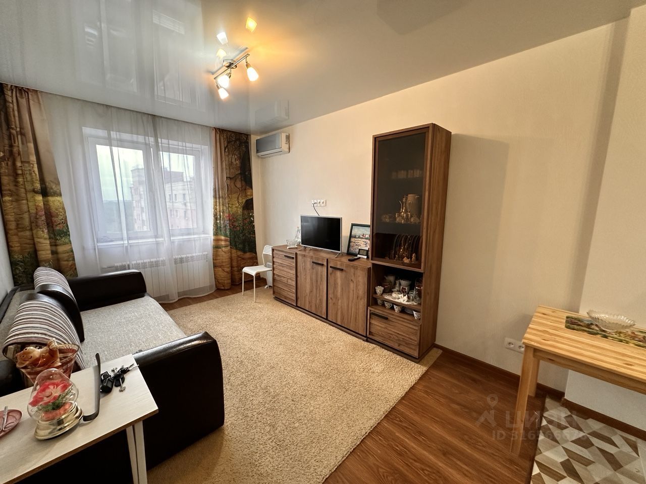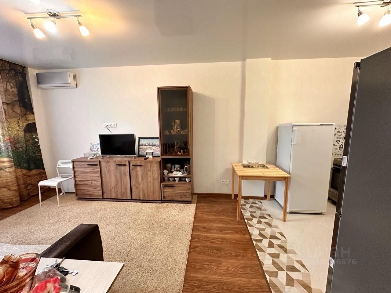В квартире сделан современный ремонт. На кухне и в комнате есть вся необходимая мебель. Для вашего комфорта установлены кондиционер, холодильник, телевизор и стиральная машина. В ванной комнате установлена душевая кабина, что делает утренние сборы быстрыми и удобными. Кроме того, имеется водонагреватель, на случай отключения горячей воды.