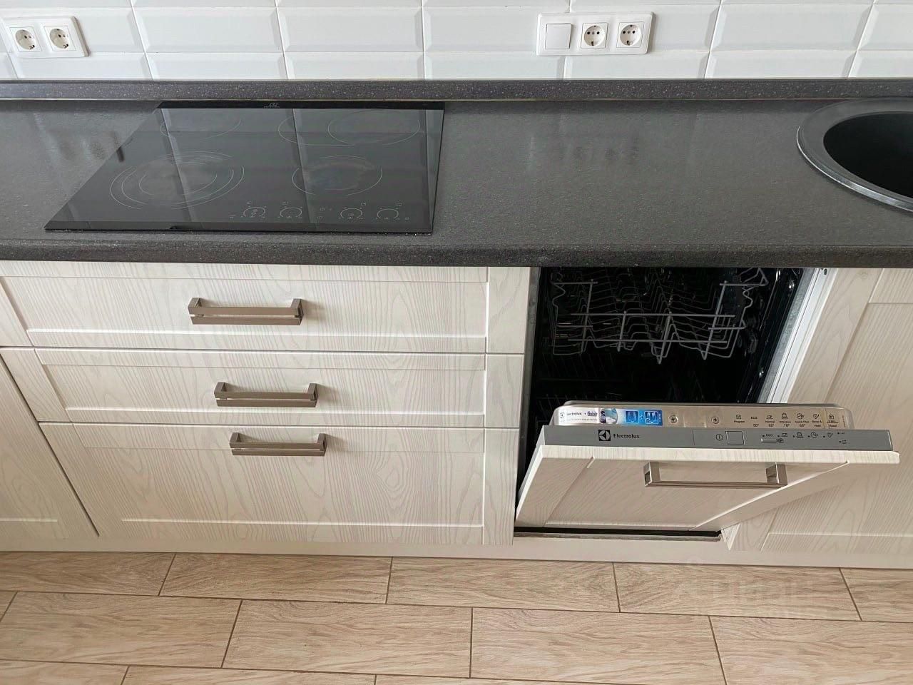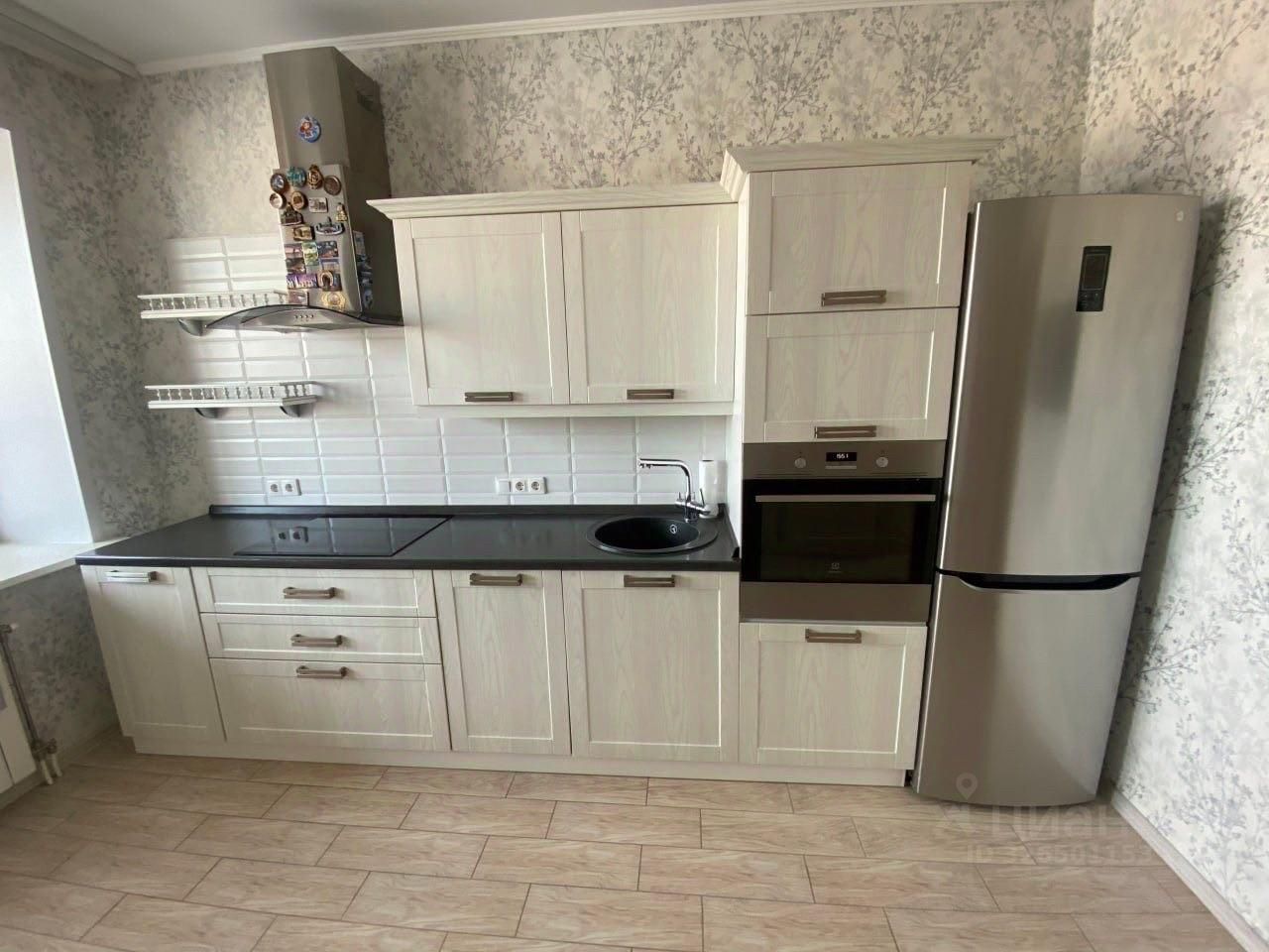 1. Кухня: Кухонный гарнитур со встроенной техникой (Духовой шкаф, эл.плита, посудомоечная машина 45, СВЧ), холодильник, буфет, стол, 4 стула, телевизор.