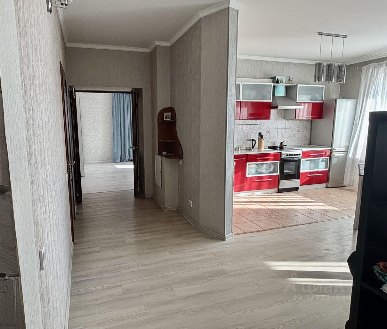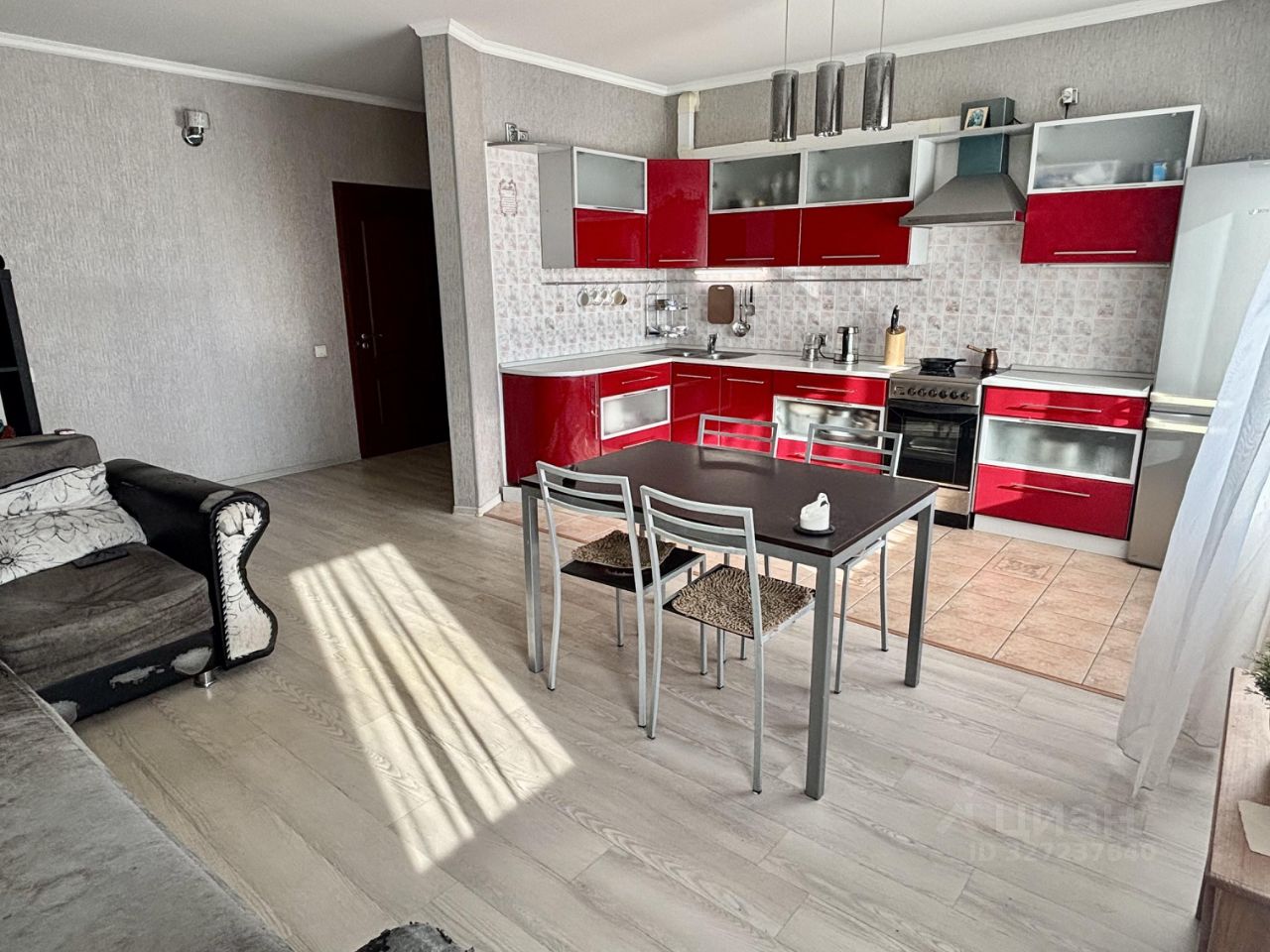 Квартира расположена в тихом районе с развитой инфраструктурой. Рядом находятся магазины, кафе и остановки общественного транспорта.