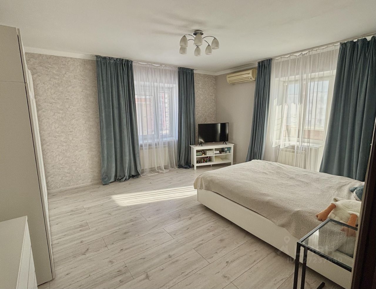 Просторная гостиная с современным дизайном, оборудованная всем необходимым для комфортного проживания. В квартире имеется вся необходимая мебель и техника. Также есть 2 кондиционера