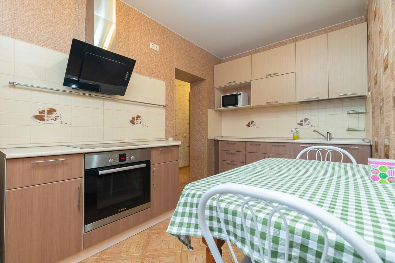 В комнатах и на кухне есть вся необходимая мебель. В спальне установлена удобная двуспальная кровать с ортопедическим матрасом, в гостиной раскладной диван. Из техники в квартире имеются холодильник, телевизор, микроволновка, стиральная машина, духовой шкаф, варочная панель, вытяжка, водонагреватель, кондиционер.