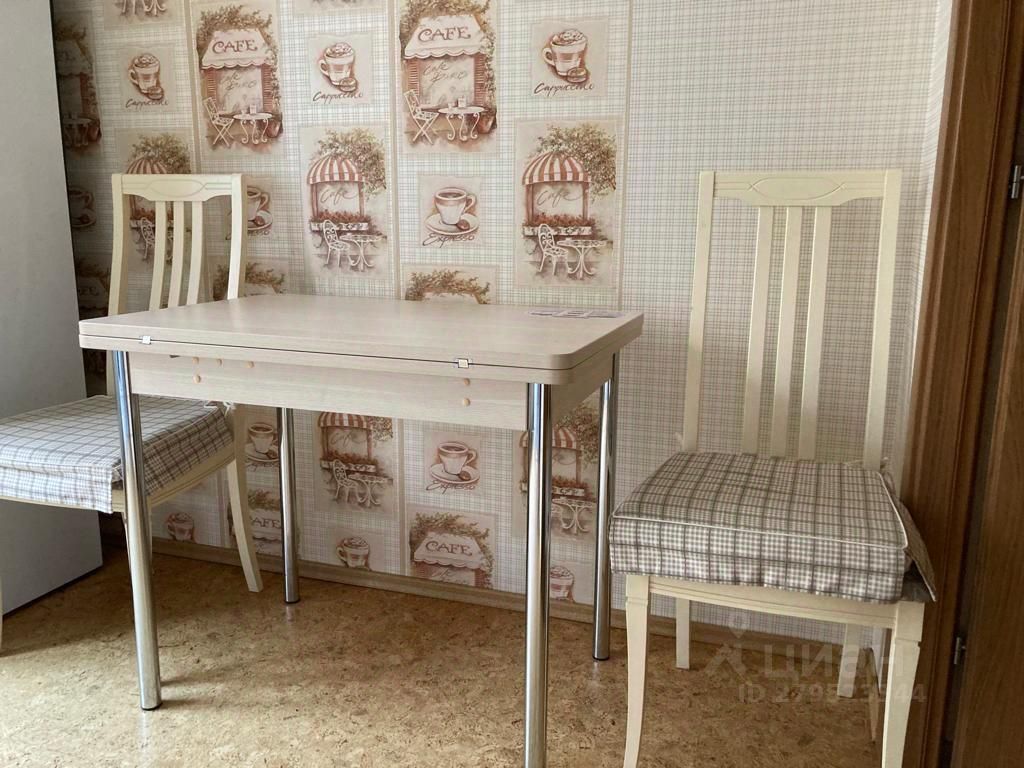 Квартира полностью меблирована: двуспальная кровать, вместительный шкаф, комод, тумбы, диван, кресла.