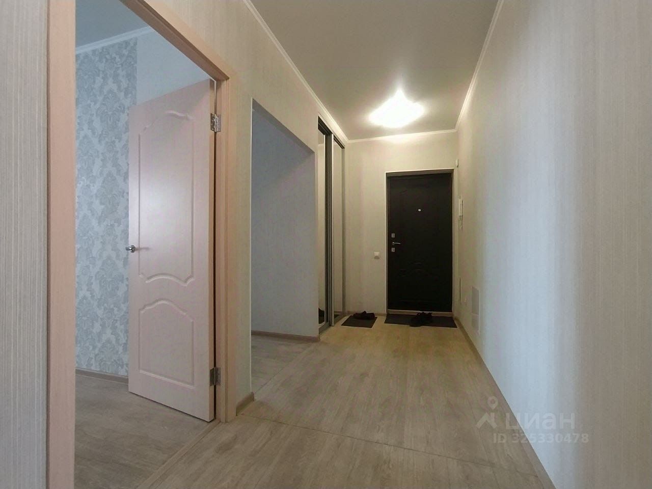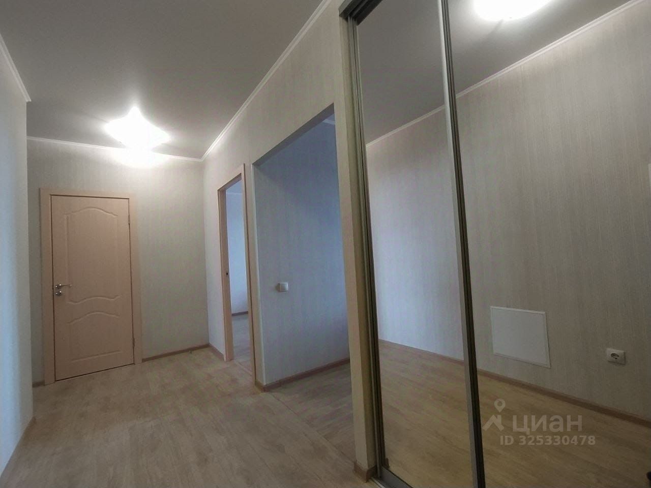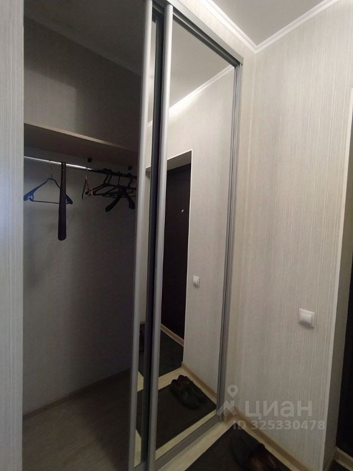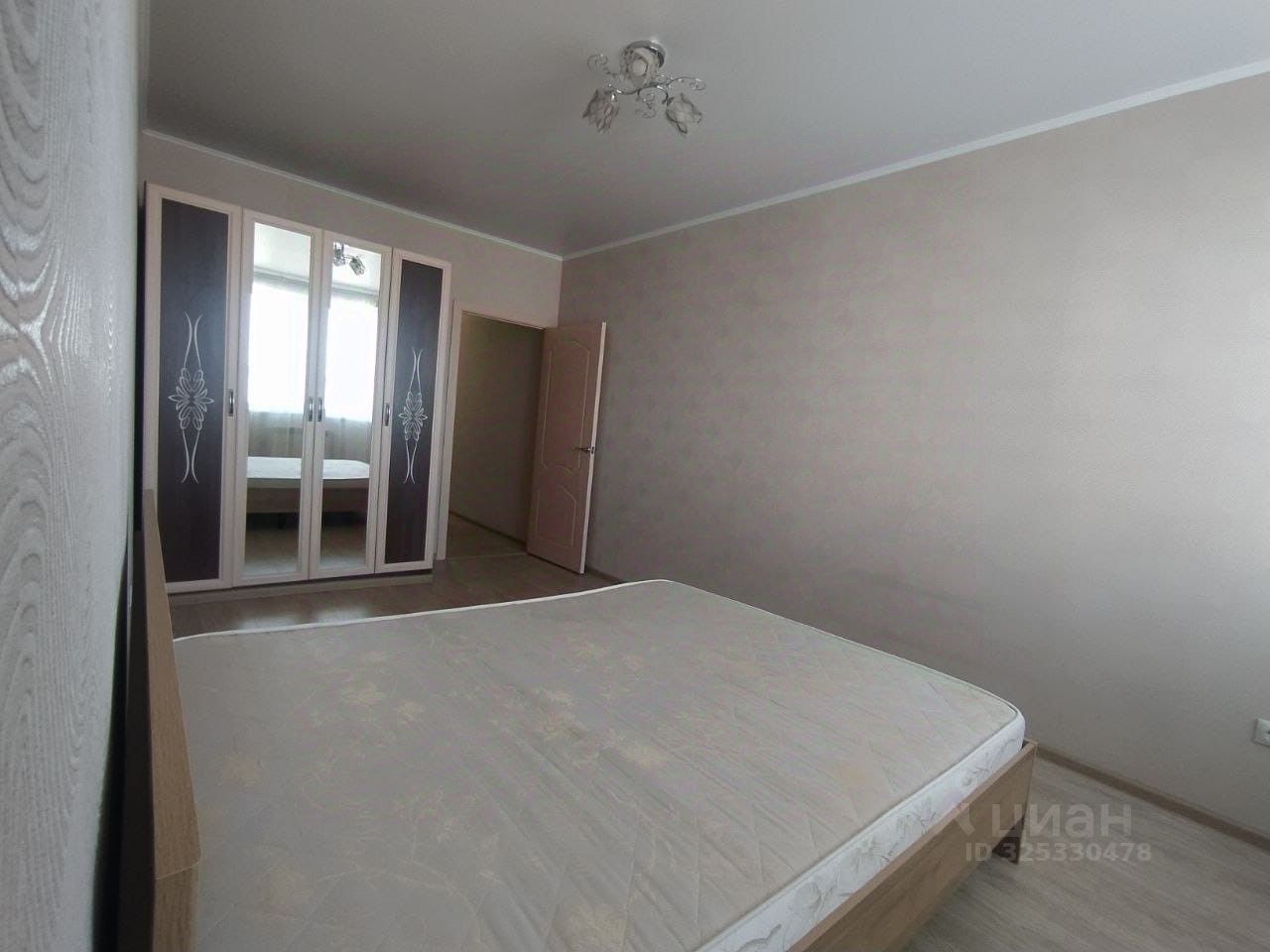 Из мебели: кухонный гарнитур с электроплитой, шкаф в спальне с зеркальными дверями, шкаф-купе в прихожей с зеркальными дверями, диван и кровать,