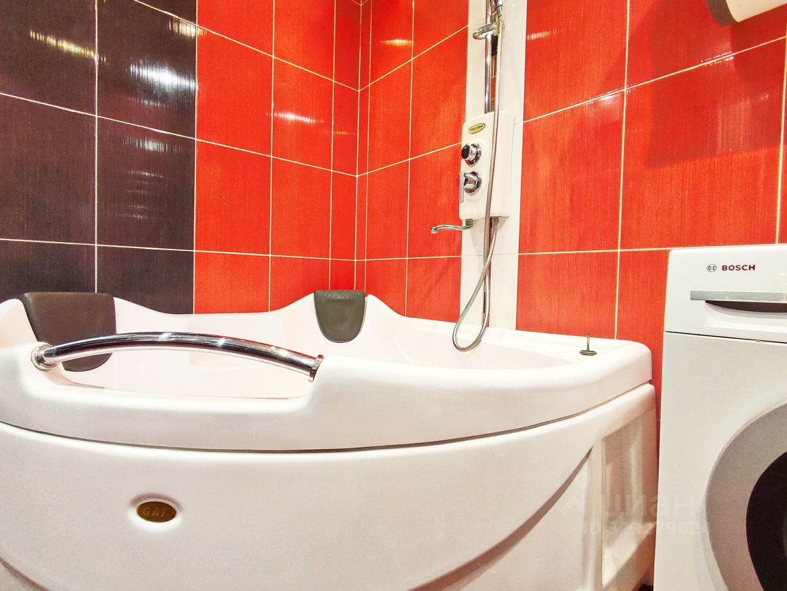 В ванной биде, душ, большая угловая ванна, стиральная машина.