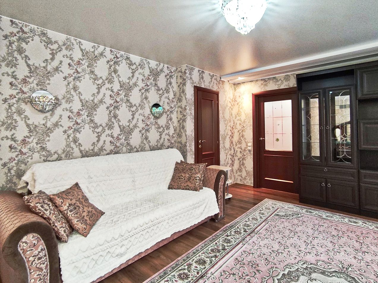 Изолированная маленькая спальня, просторная проходная спальня- гостиная (есть диван для просмотра телевизора и кпрвать для полноценного сна)