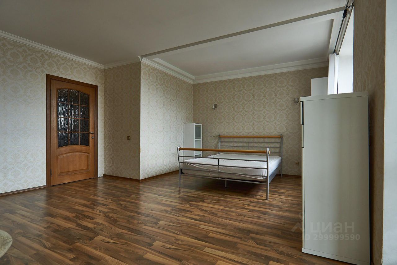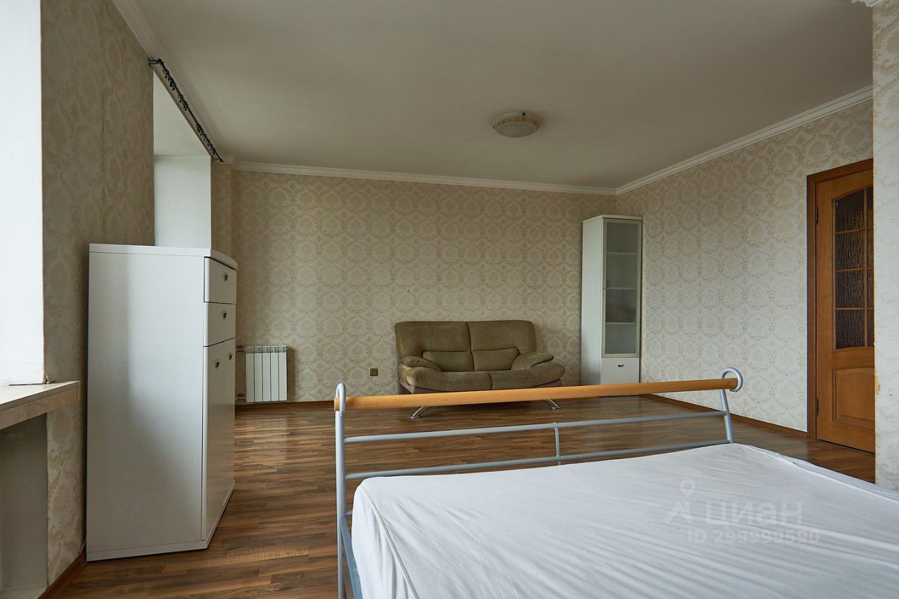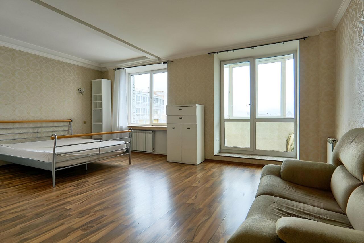 Квартира общей площадью более 100 м 2 включает в себя спальню с выходом на балкон, а также большой зал студийного типа.