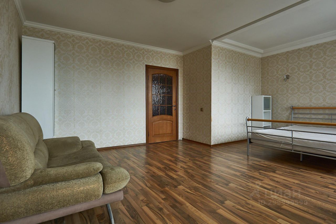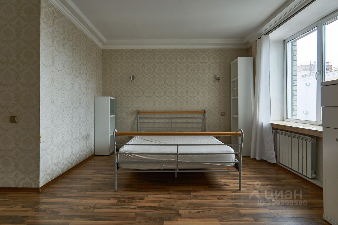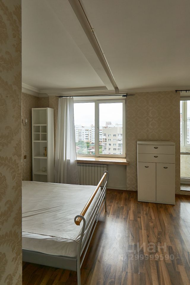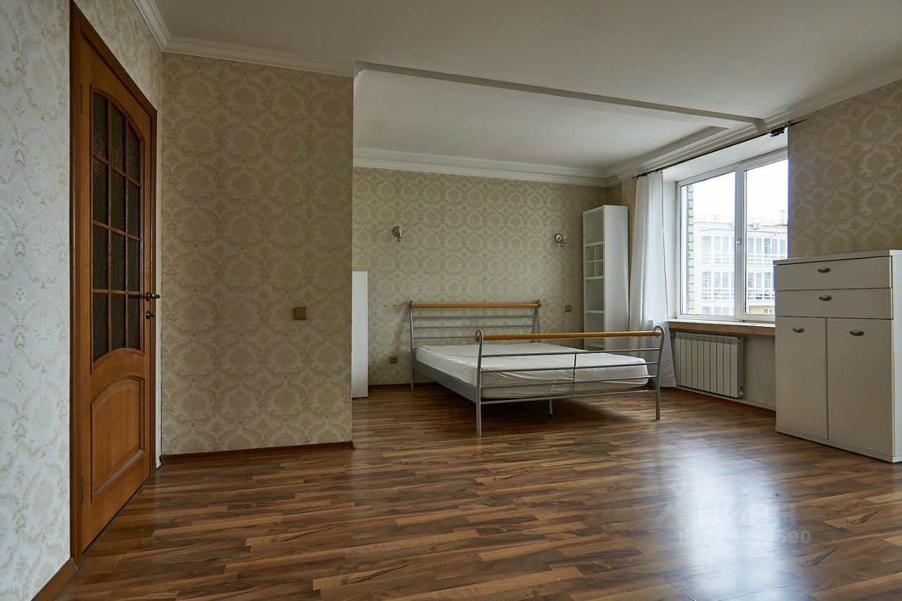 Квартира общей площадью более 100 м 2 включает в себя спальню с выходом на балкон, а также большой зал студийного типа.