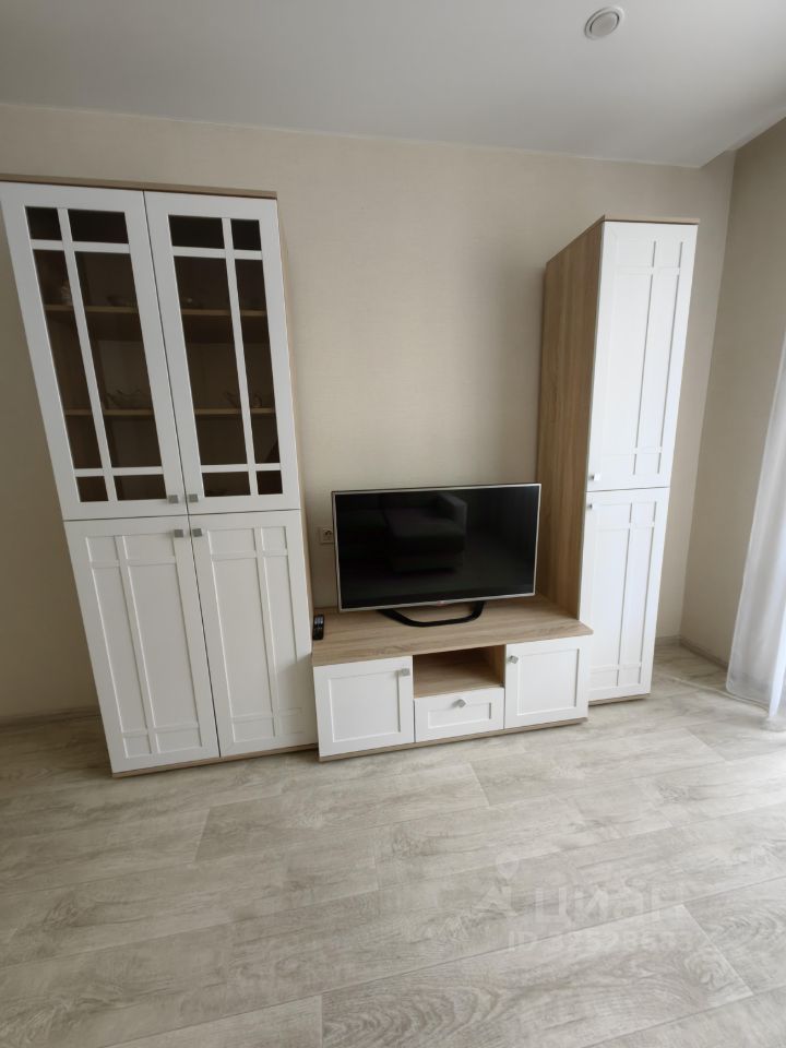 В гостиной тоже имеется балкон со шкафами для хранения, диван, шкафы, журнальный столик и телевизор с кабельным ТВ и интернетом.