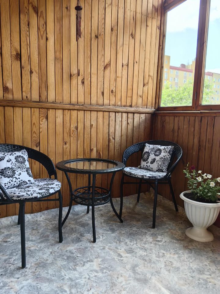 Комнаты изолированные, в спальне есть большая лоджия с зоной отдыха, большой вместительный шкаф купе, кровать с ортопедическим матрицом, две прикроватные тумбы и комод.