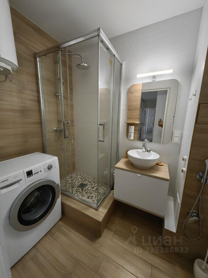 Ванная комната оснащена водонагревателем и стиральной машиной.