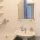 В санузле установлена стиральная машина, а так же счётчики на горячую и холодную воду. На полу уложена плитка, на стенах наклеен кафель.