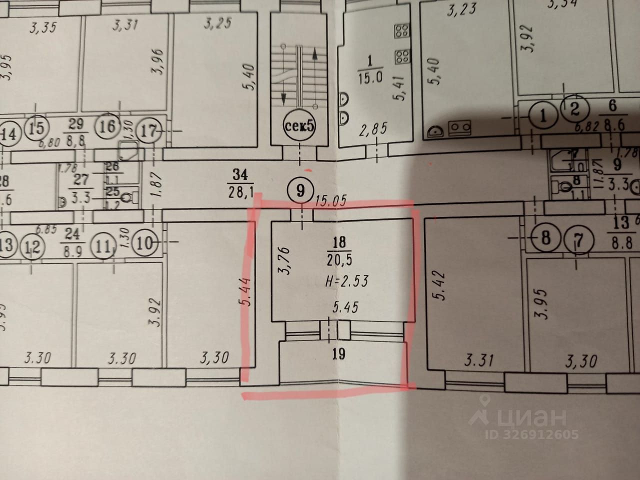 Комната находится не в секции, отдельный вход с лестничной клетки.