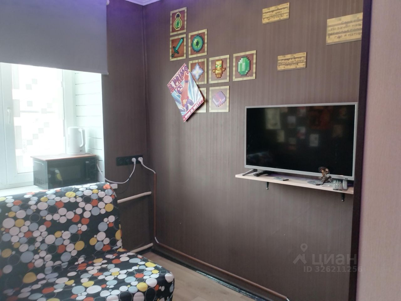 Квартира расположена на втором этаже кирпичного дома. В квартире выполнен дизайнерский ремонт, что создает атмосферу свега и комфорта, короче максимально треп хата для вайба вечеринок, Пепе шнейне фатафа. Комната оборудована 2 шкафами и встроенным стеллажом в стену, телевизором, раковиной, диваном раздвижным.
