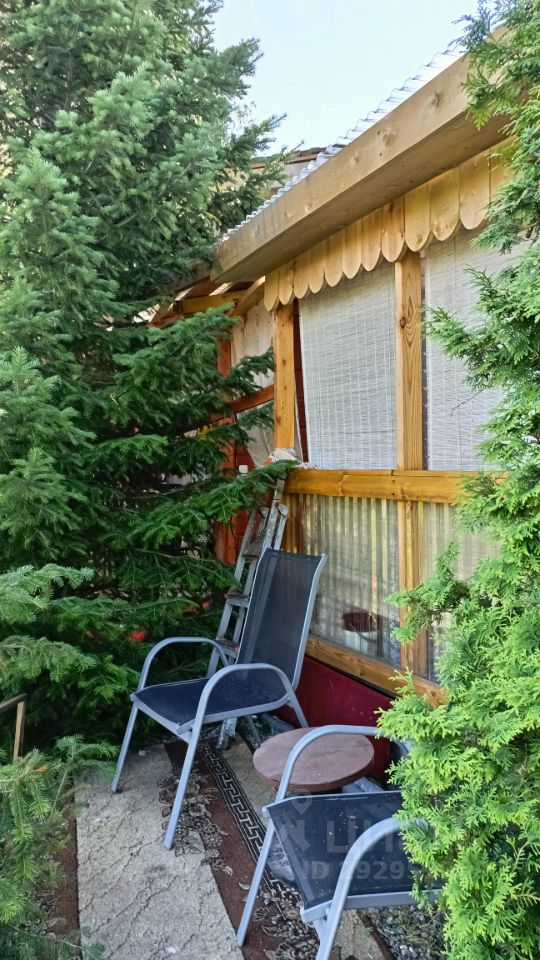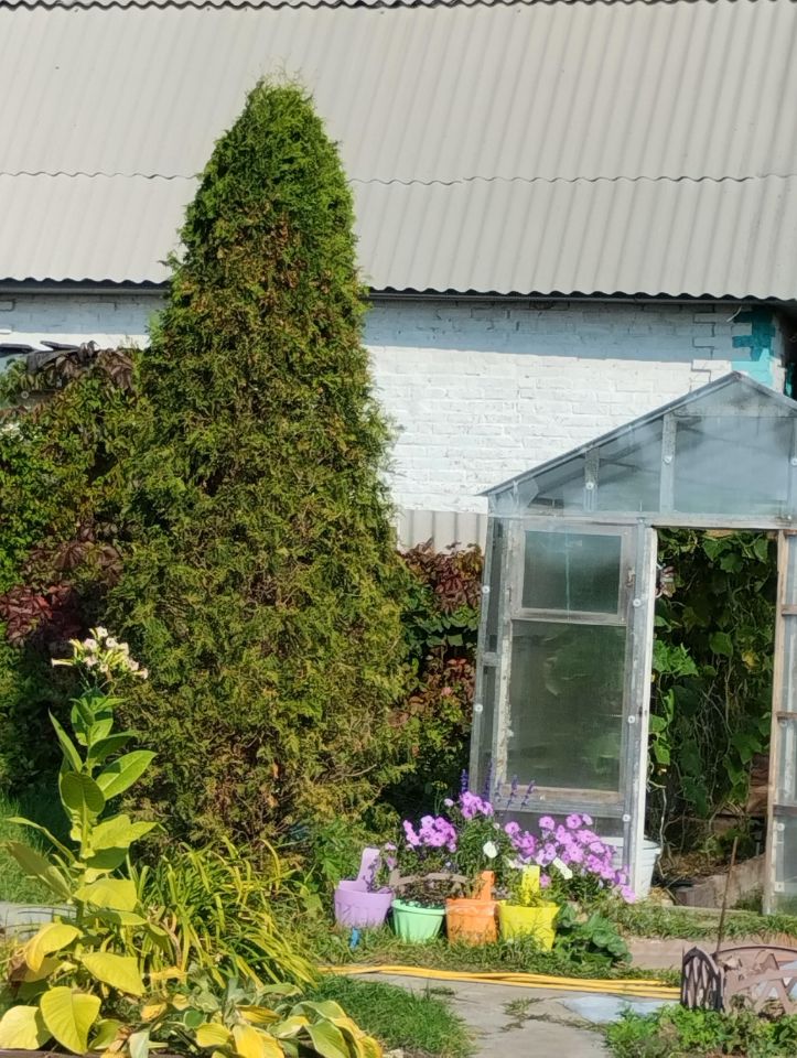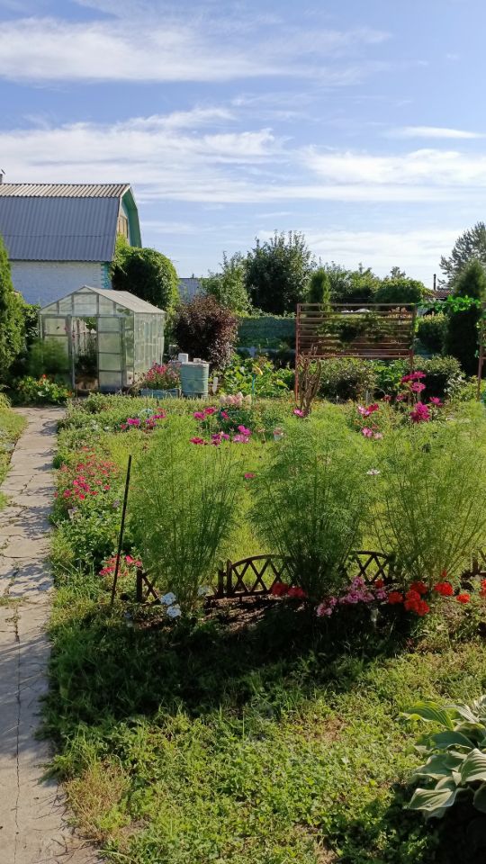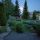 В беседке вся необходимая мебель для отдыха. Перед беседкой,как и на самом участке ,хвойные деревья: туи,можевельники,голубая ель и ёлочки,лужайка с газонной травкой и цветов: пионы,лилейники,гортензии,климатисы. Из беседки выход в крытую зону барбекю.