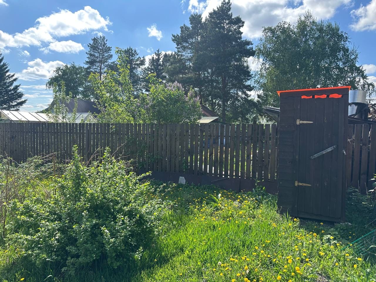 На участке площадью шесть соток расположен жилой дом, теплица, газон, плодоносящие многолетние деревья и кустарники: яблони, смородина, малина, крыжовник, жимолость, клубника.