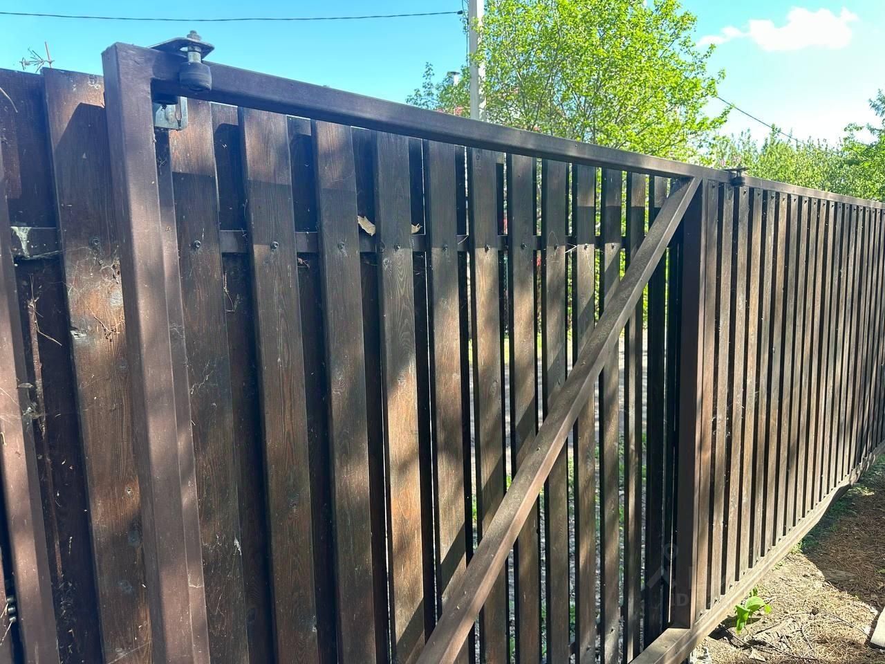 Установлен новый забор из лиственницы с откатными воротами.