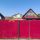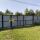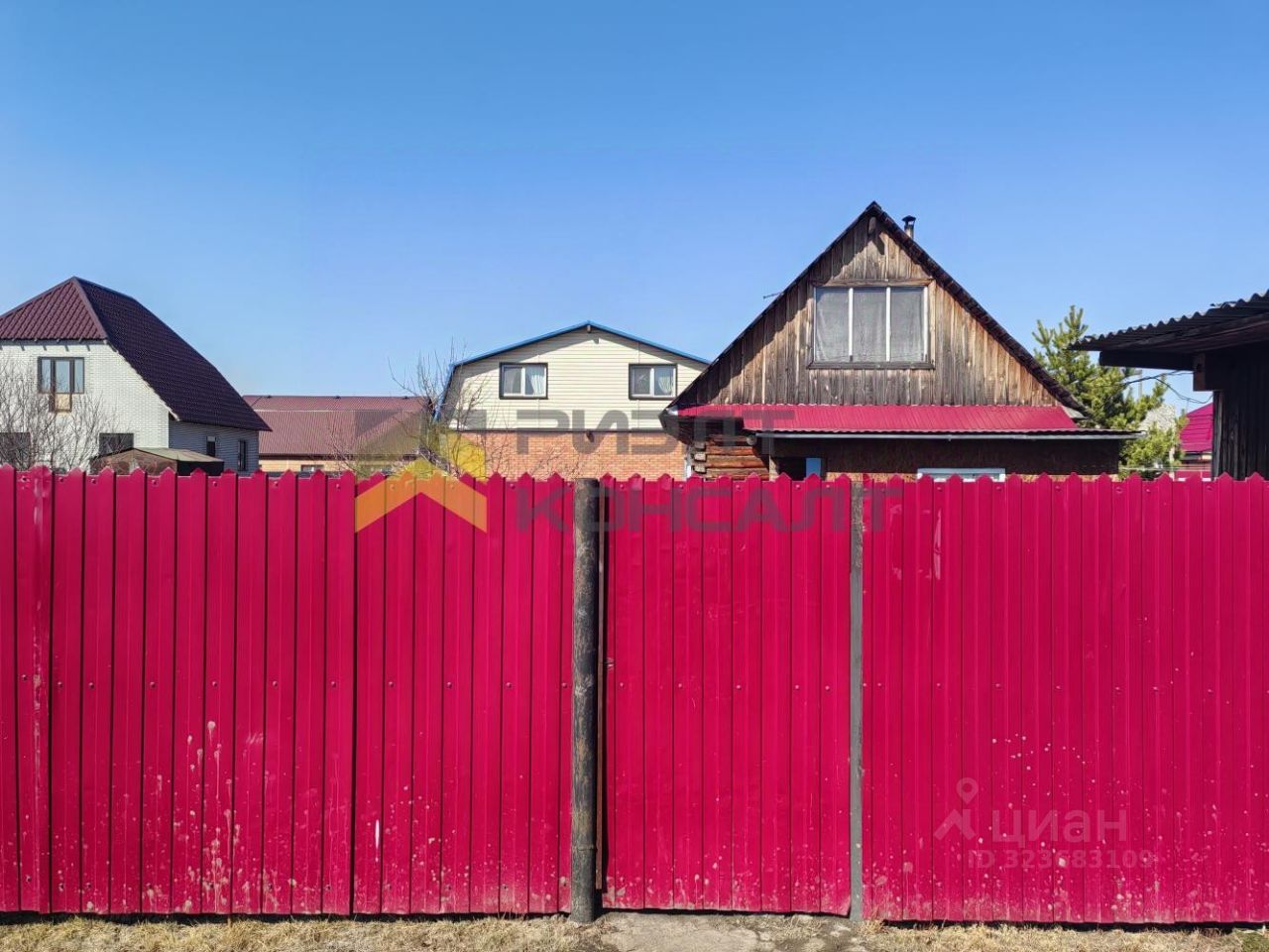 Участок, со стороны аллеи, огорожен профнастилом, с широкими распашными воротами.