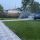 На заднем дворе плитка и яблоне-грушевый сад . Выращено многолетняя яблоня с плодами и груша с большими сочными грушами ( фото есть ))