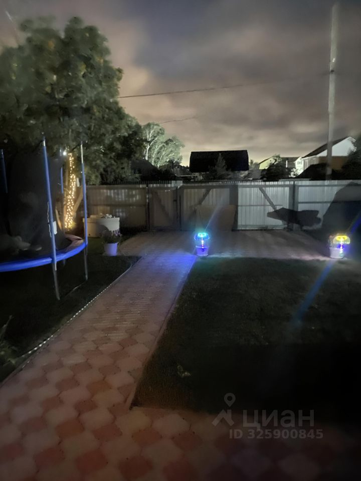 На участке расположен дом , хоз блок , туалет , колодец на 6 колец , место для качели , для мангала , бассейн с куполом и батут . Газон- густой , зелёный , ухожен . Вся территория в темное время суток освещается , свет включается в доме . Вся оставшееся территория покрыта качественной тротуарной плиткой примерно 200 кв . перед домом и за домом . Предусмотрена парковка для двух авто .