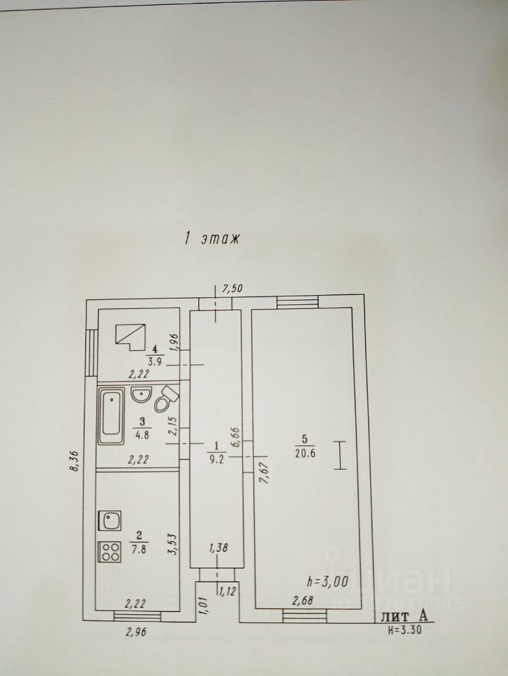 Дом двухэтажный. 1 этаж - 46 м2 ( кухня - 7,8 м2, коридор - 9,2 м2, комната - 20,6 м2, санузел - 4,8 м2). 2 этаж - 38,7 м2 ( комната - 19,4 м2 , комната - 19,3 м2), лоджия - 6,1 м2. Второй этаж без отделки.