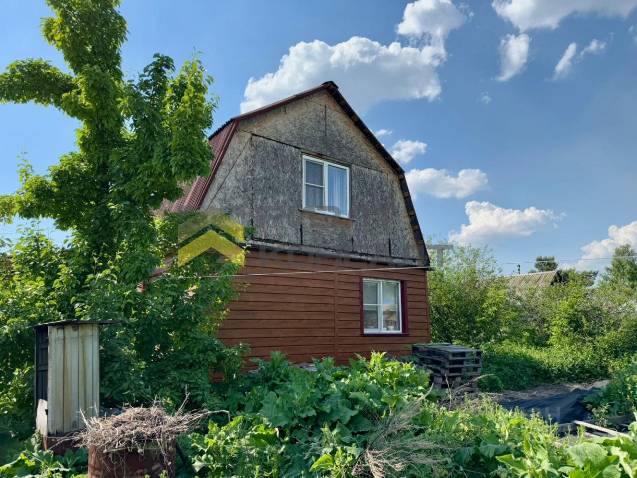 Дом находится на центральной аллее, рядом с въездом в садоводство. Дом 2018 года постройки. Основная часть кирпичная, а так же деревянная пристройка. В жилых комнатах выполнен ремонт: натяжной потолок, освещение, обои. В кухне осталось доклеить обои и натянуть потолок. В дом заведены все коммуникации: вода, канализация, электричество. Также есть твердотопливный котел. Санузел в доме.