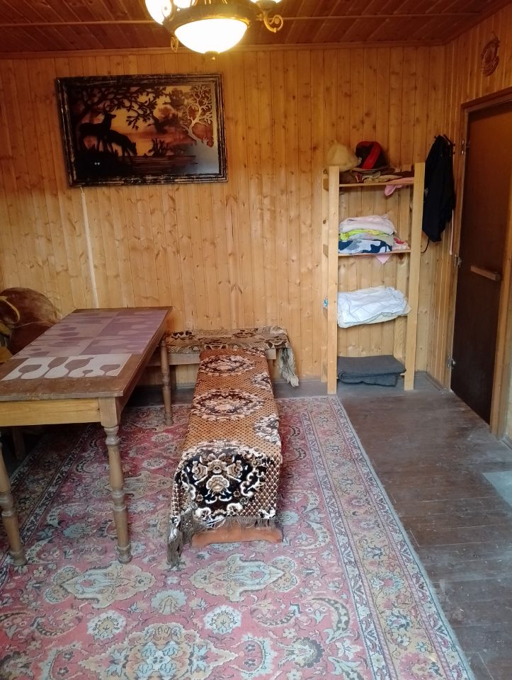 Дом каркасный, очень теплый, обшит металлосайдингом под брус. В доме есть твердотопливный котёл и электрический котёл, водонагреватель, для санузла сделан отвод, спутниковое ТВ, интернет (оптоволокно ), электричество, закрытая веранда с панорамными пластиковыми окнами, под домом большой погреб из бетонных плит. Новым хозяевам остается встроенная кухня и часть мебели.