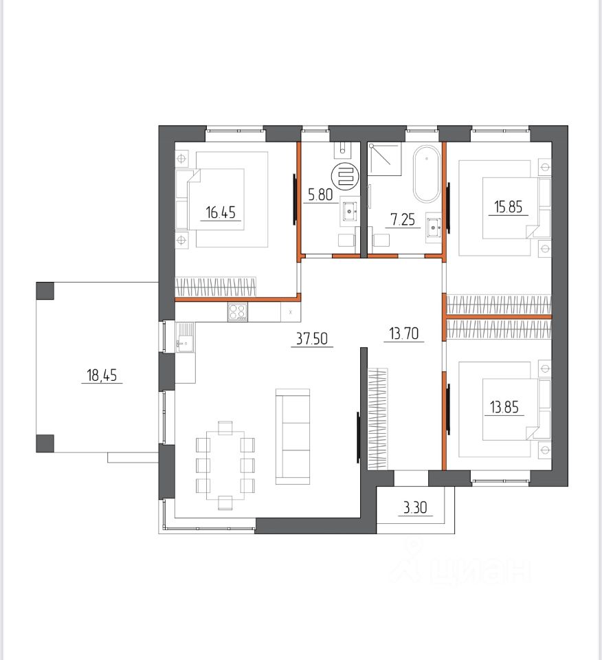 Дома продаются без внутренней черновой отделки и разводки инженерных систем. Эти работы выполняются дополнительно после согласования дизайн-проекта.