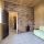 Удобная планировка включает в себя две отдельные зоны с отдельными входами через просторную террасу. В первой зоне располагается кухня-гостиная, уютная комната и санузел, а во второй — банный комплекс с комнатой для отдыха, душевой и русской баней на дровах. Все коммуникации в наличии: электричество, локальная канализация, городское водоснабжение и газ можно подключить без проблем (за забором).