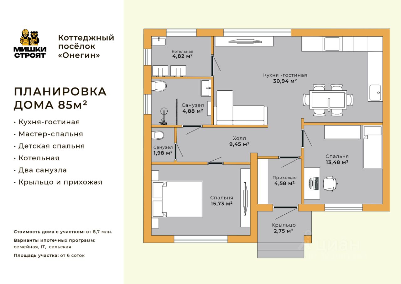Дом с ДВУМЯ или ТРЕМЯ спальнями по цене квартиры — от застройщика!