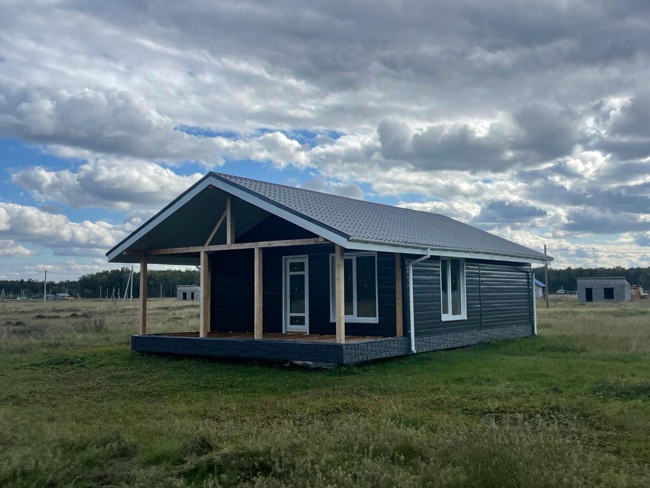 Каркасный дом на участке 7 соток. Жилая площадь 55 кВ.м., открытая терраса, две спальни, кухня гостиная с большими окнами, санузел. Отделка черновая. Смонтирован вывод под коммуникации. Электричество подключено. В поселке проведены центральное водоснабжение и газ. По Вашему пожеланию - возможен вариант отделки ''под ключ'' с подведением коммуникаций.