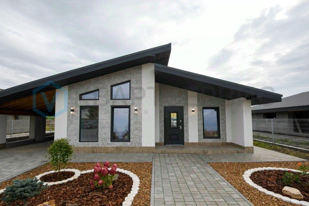 •При строительстве дома использовались качественные материалы ( арбалитовые блоки ), фасад выполнен в современном стиле (штукатурка + плитка).