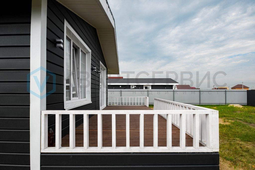 •Дoм c террасой, внешним освещением и большими окнами. Полностью наружная отделка, внутренняя отделка - white box.