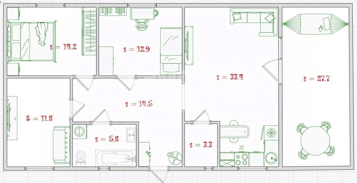 Три комнаты с оптимальной площадью изолированы.