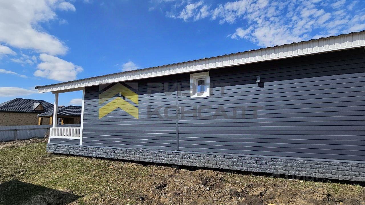 Выполнена вся внешняя отделка дома: металлический сайдинг Docke, водостоки.