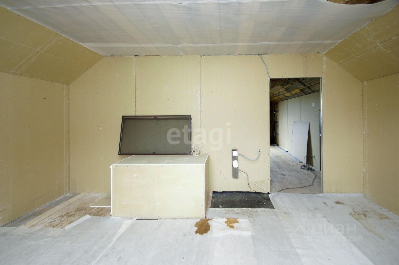 Планировка дома позволяет адаптировать внутреннее пространство под индивидуальные потребности — отделка не завершена, что дает возможность выбрать материалы на свой вкус. Участок площадью 15 соток оборудован двумя заездами, что упрощает парковку и маневрирование. На территории установлены новые откатные ворота, есть теплица и огород за забором — готовые решения для выращивания овощей и зелени.