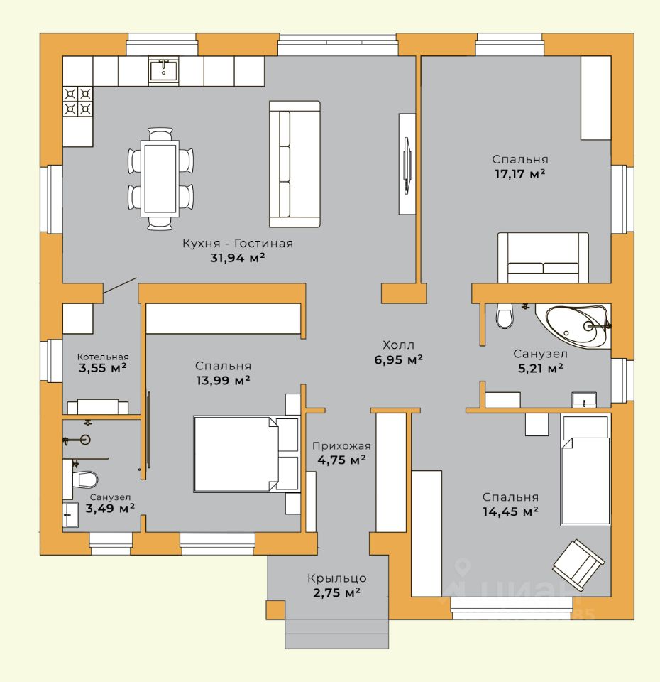 Уютный дом от застройщика в современном коттеджном посёлке с развитой инфраструктурой. Идеальный вариант для семьи: просторный, с продуманной планировкой и всеми коммуникациями под ключ.