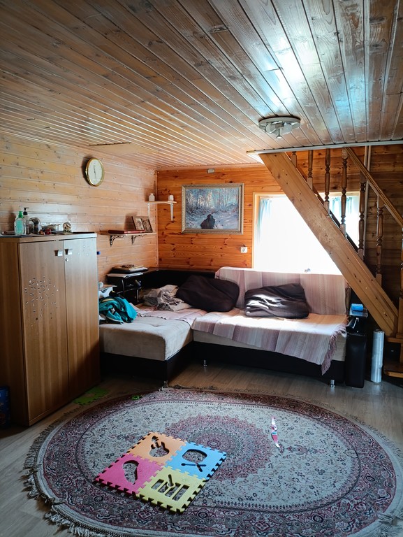В доме две комнаты, кухня-гостиная на первом этаже и спальная на втором, коридор, туалет с ванной, сени. В стоимость входит кухонный гарнитур в очень хорошем состоянии с газовой плитой, диван в гостиной, гараж и мангал. Один взрослый собственник, городская прописка, льготный тариф на свет. Подходит под ипотеку